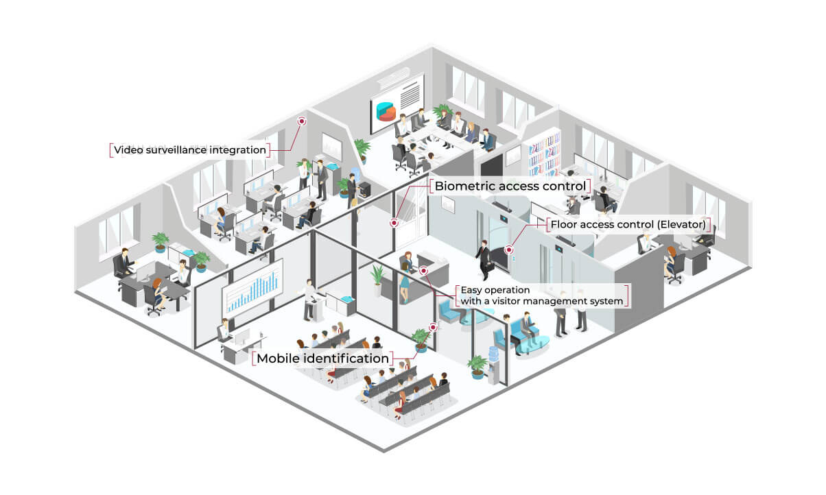 Operating a commercial office facility means ensuring the necessary safety, controlling processes optimally and offering the highest possible level of convenience coupled with maximum efficiency. Suprema BioStar 2 provides a comprehensive range of secure, reliable and convenient access control features to a modern office environment. From smaller offices to multi-site corporations, Suprema delivers bespoke access control security solutions to meet dynamic needs from system integrators, installers, and end-users.