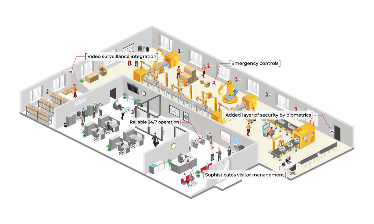 • Flexibility in system design differentiating authentication methods from high-security access points to public areas